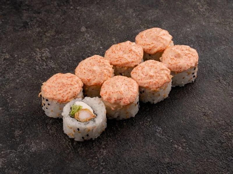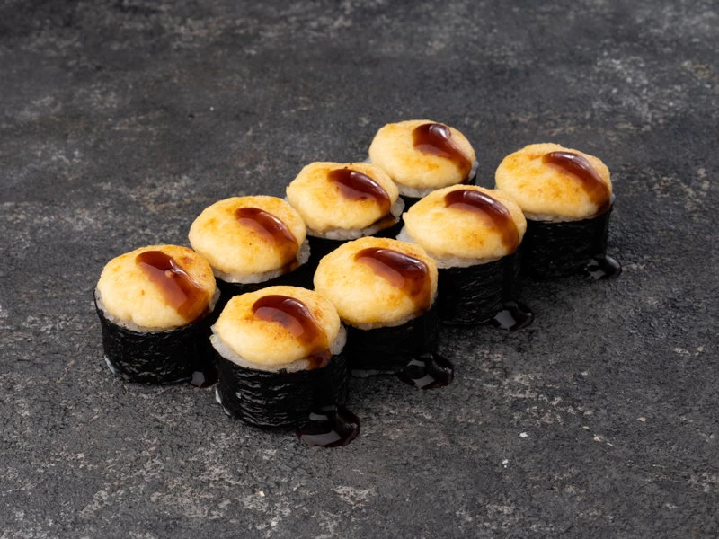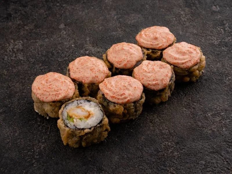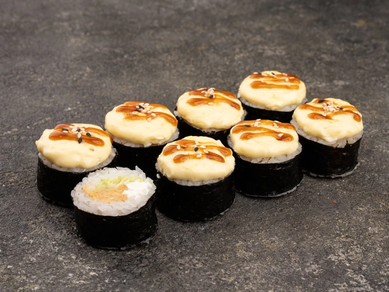 Ролл запеченный с темпурной креветкой и сырным соусом