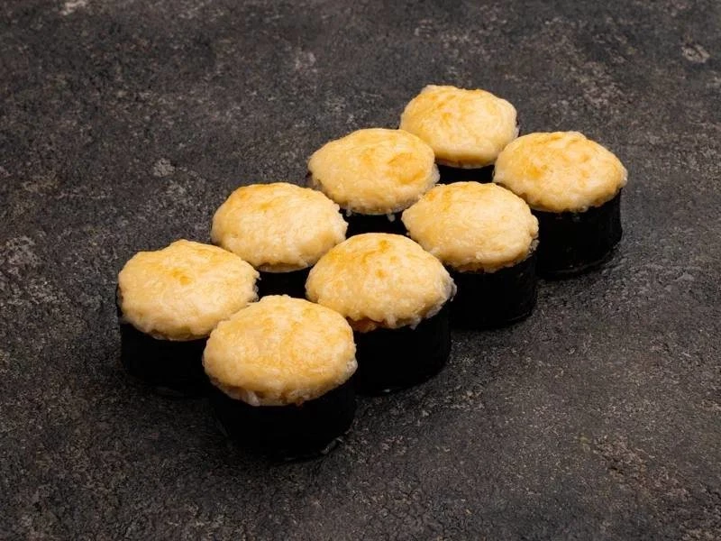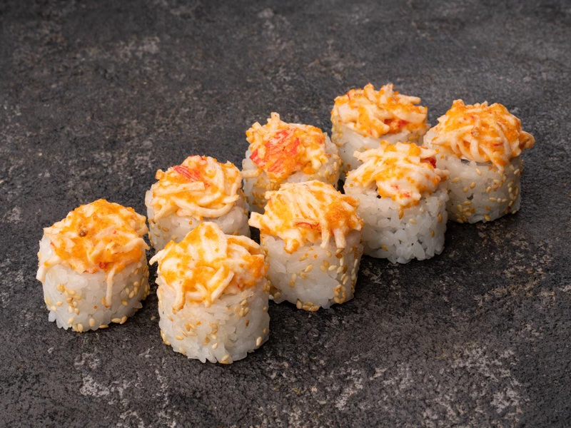 Ролл запеченый со снежным крабом и с чесночным соусом (Товар в подарок)